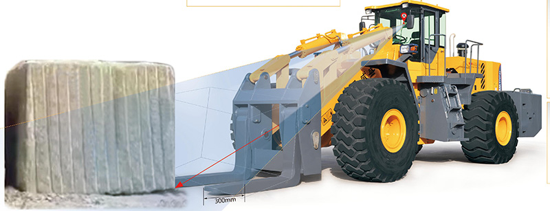 wheel loader WSM988T48 The driver A point is the height of 700mm away from the seat (normal sitting position). When the fork is horizontal, we can see the fork and fork tip fork into 300mm way.In the lifting process, the driver can see the tip and fork, it is safe to work. wheel loader WSM988T48